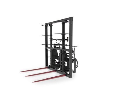 Three Prong Bale Spear Kverneland tines @ 23" spacing Made to handle large 4' x 4' x 8' square bales Not to be used for carrying 2 bales stacked...