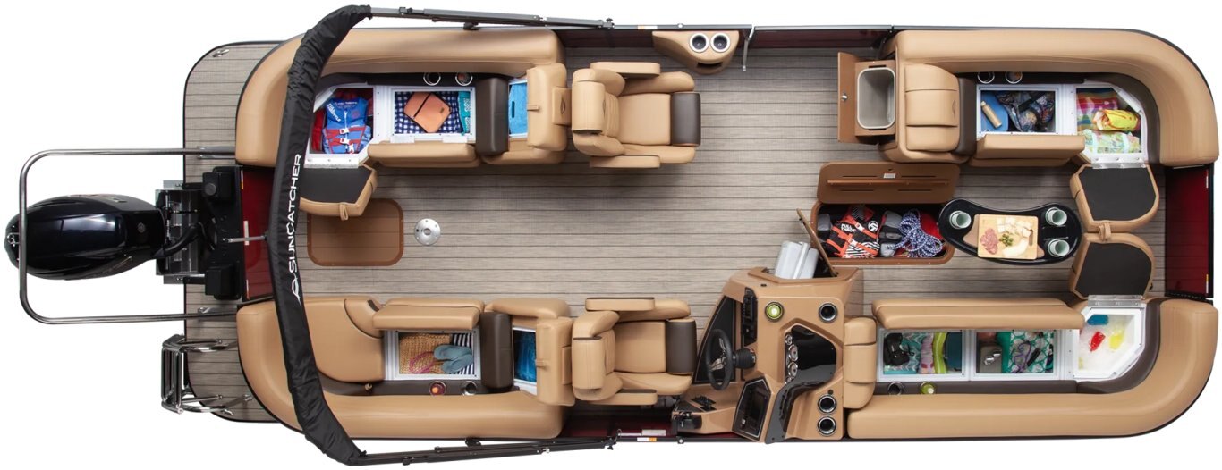 High-back captain’s chair shows attention to detail with SunCatcher branding. |