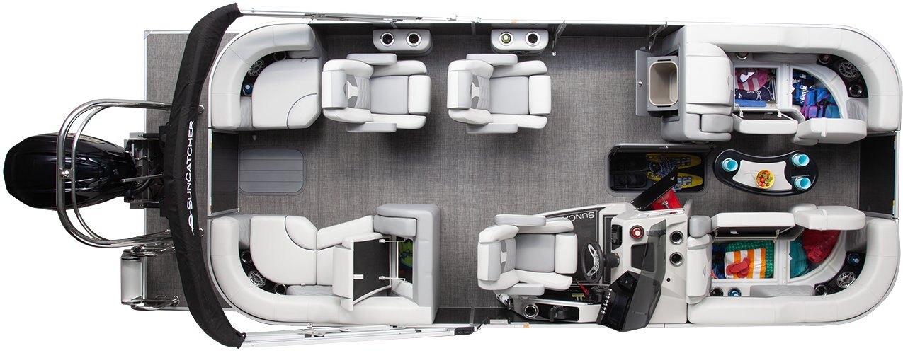 For 2026, the SunCatcher Elite SR debuts with a layout built for socializing. An added stern passenger helm seat creates a casual, comfortable space that turns the stern into your go-to hangout when anchored in the cove.