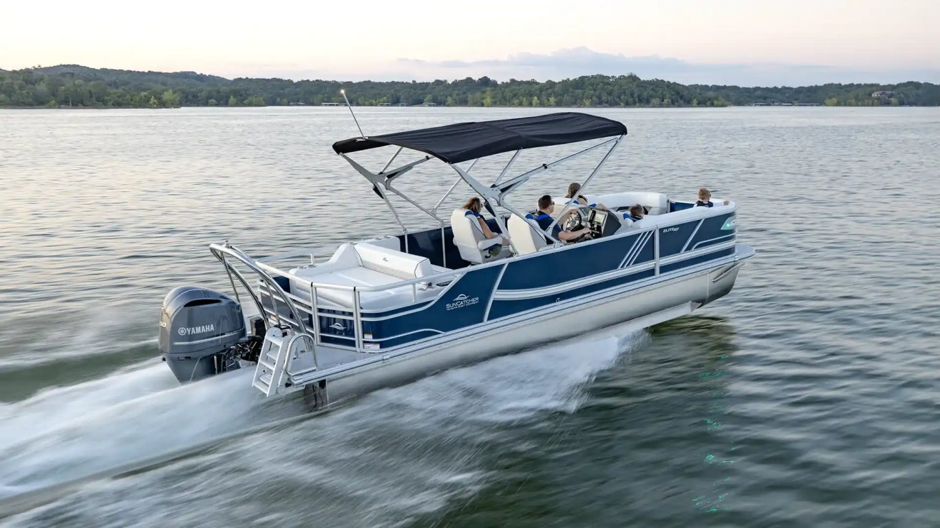 The 2″ main rail provides sturdy support and enhanced safety for passengers. Thoughtfully integrated SunCatcher branding adds a touch of style while reinforcing the boat’s quality and craftmanship. |