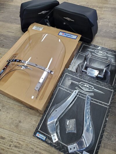 PACKAGE KIT WORTH OVER $2000.00, IN STORE PICK UP, OR ASK FOR A SHIPPING RATE, Suzuki 990A0-75059-STD Chrome Touring Passenger Backrest with Large...