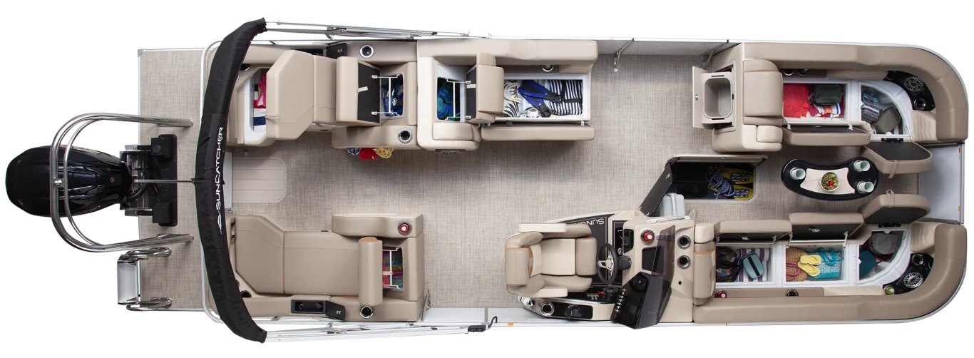 2026 SunCatcher Elite 326SS BlackoutSIDE-OPEN CUBBY STORAGE