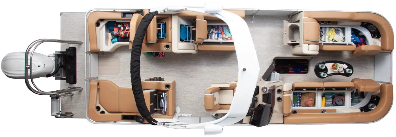 A built-in tow point supports water sports, while the bimini canvas with navigation lights adds comfort and safety for every outing. |